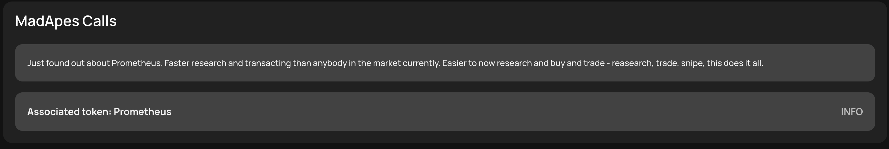 All pairs automatically scraped and added into the live feed are indexed in a similar manner to normal indexed pairs. When a coin is scraped from various information sources, it is displayed in this format, which shows the original message it was scraped from along with the coin that was in the message: